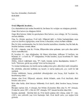 bölməni 16 - cı hərfi də, "P" olduğundan, Ovalın həndəsi, riyazi hesabatını Pi - kimi