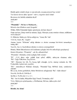 “Piramida”, Sözünün, sirrini açdıqda, belə oxunur :