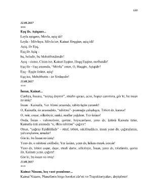 Aşıq - cismə, Cisim isə, Kainat Eşqinə, Həqq Eşqinə, məftundir!
