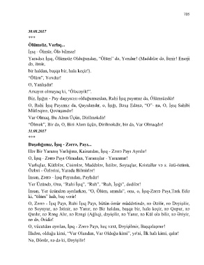 nə Soyuyur, nə İstinir, nə Yanır, nə Bir haldan, başqa bir, hala keçir, nə Qopur, nə